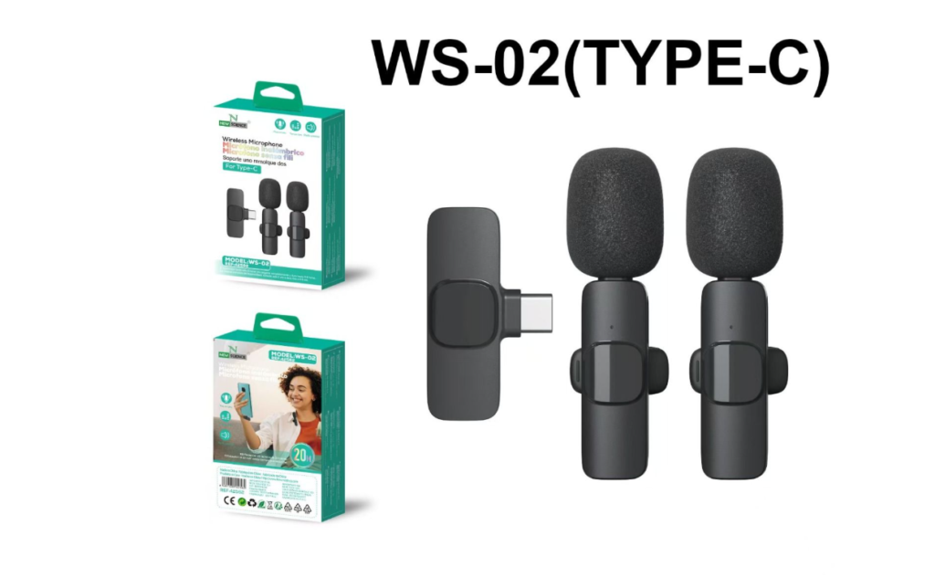 🎤 Wireless Lavalier Microphones – Type-C (2-Pack) 🔌 WS-02 🎬 cantidad