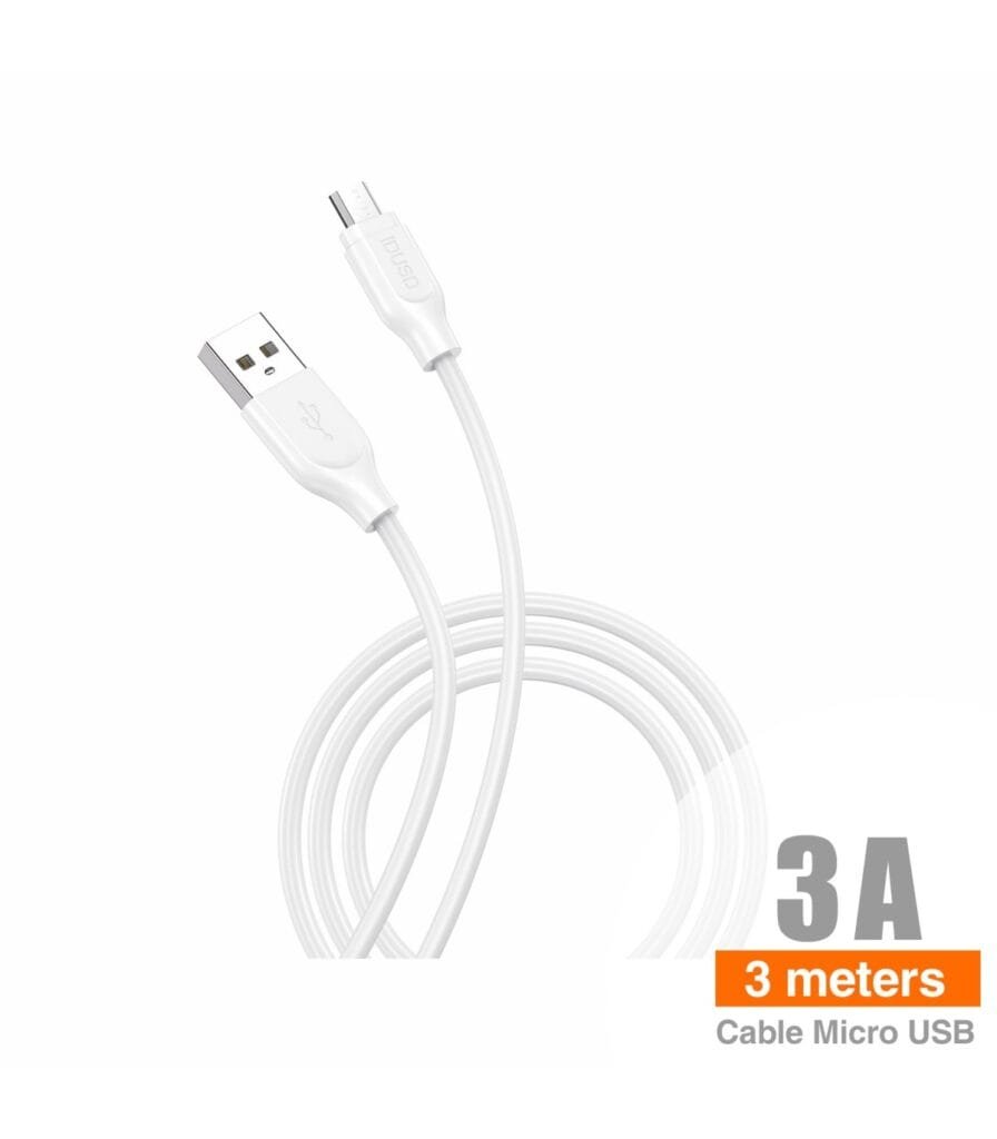 🔌⚡ Micro USB Cable 3A | 3 Meters 📏📱 Model: SE-02 🚀 - White cantidad