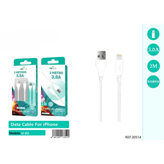 📱⚡ Cable iPhone 5.0A 🔌 2 Metro 📏 Modelo: U-02 ✅ cantidad