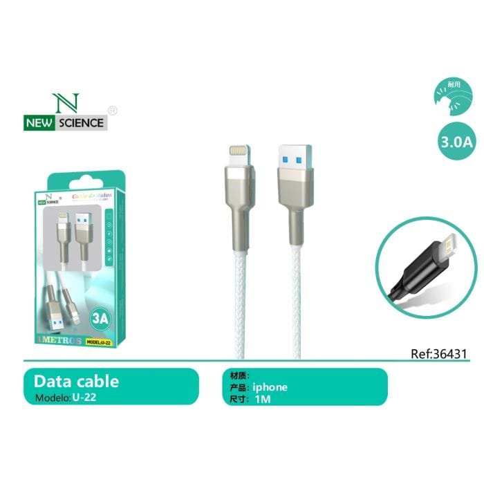 📱⚡ Cable para iPhone 1M-🔌 5V/3.0A ⚡ Model: U-22 ✅