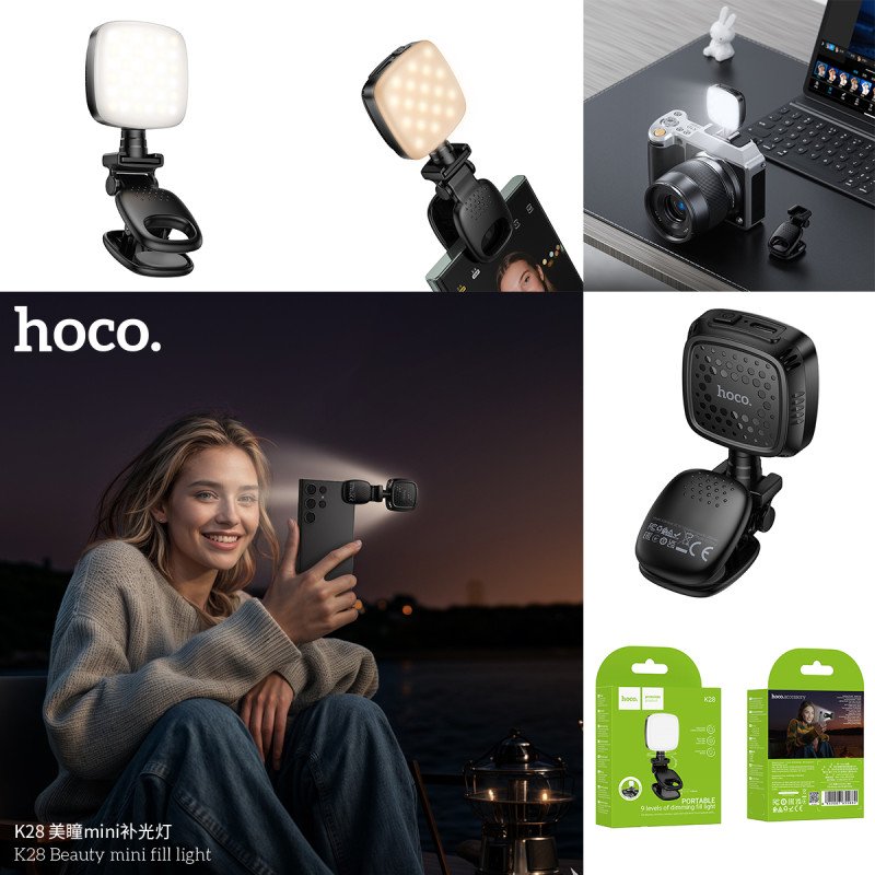 💡 Hoco K28 – Mini Fill Light (Warm/Cool/White • 9 Levels • 2–5h Use)