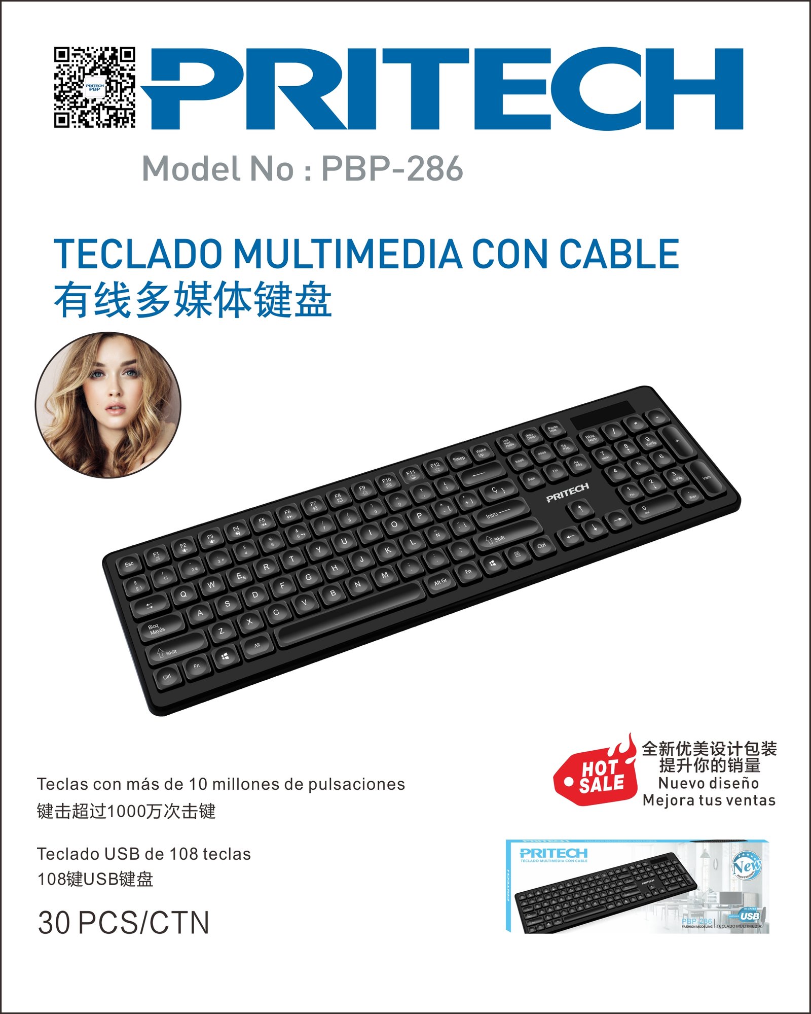 ⌨️ PBP-286 Wired Multimedia Keyboard — durable, quiet-touch keys with smooth typing experience.