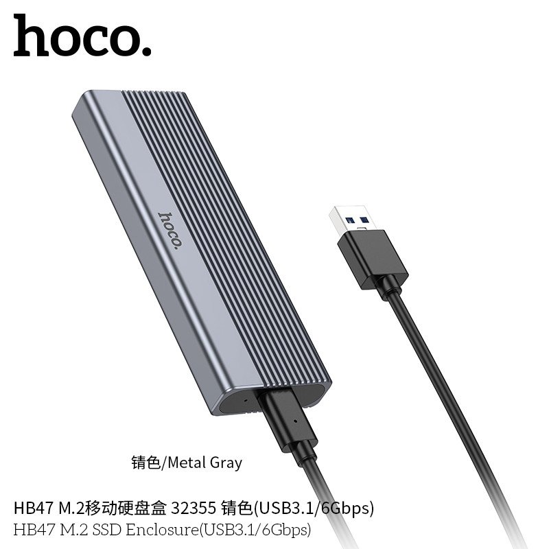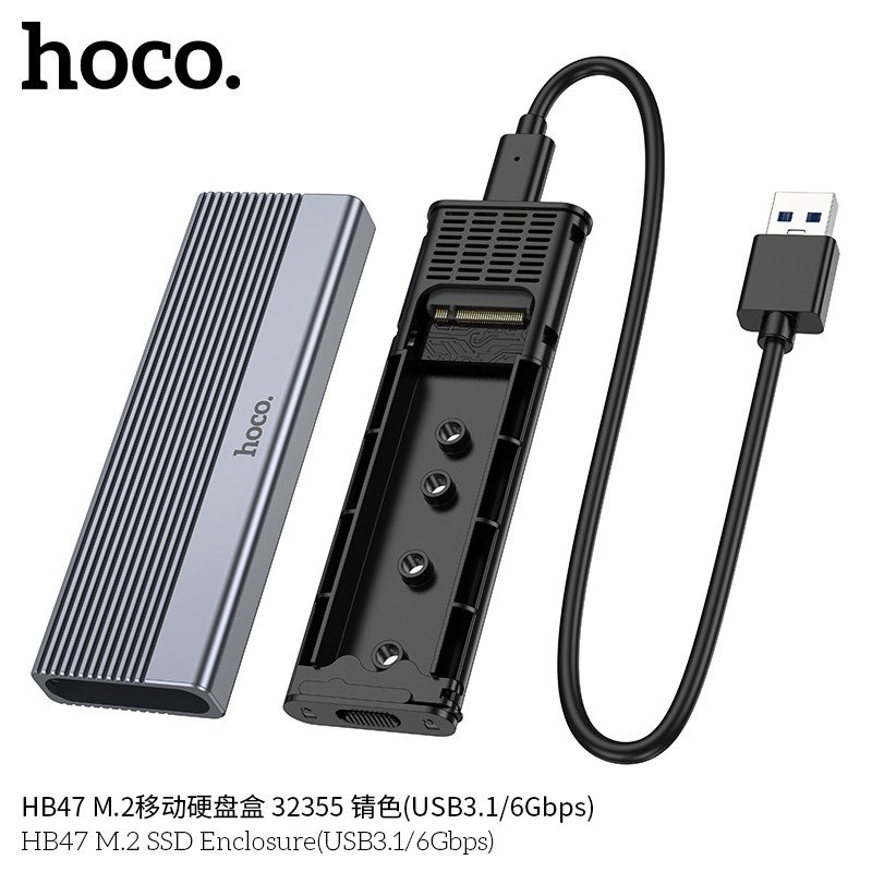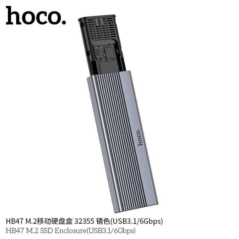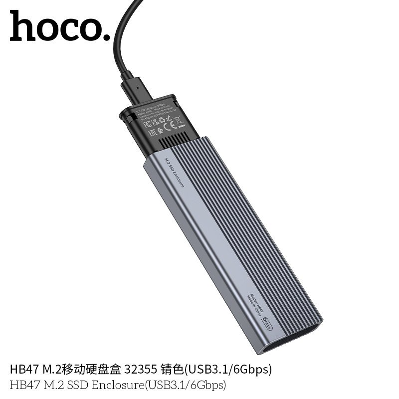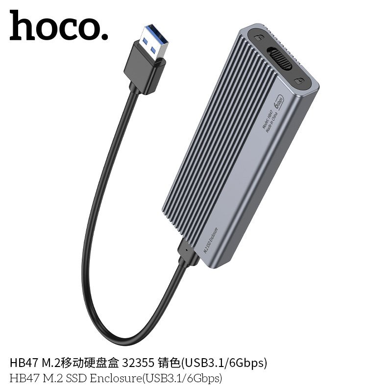 The Hoco HB47 is a compact and durable enclosure designed for M.2 SATA SSDs, offering theoretical speeds up to 6Gbps through its USB 3.1 connection. Ideal for users who need fast data transfers and reliable protection for their drive.