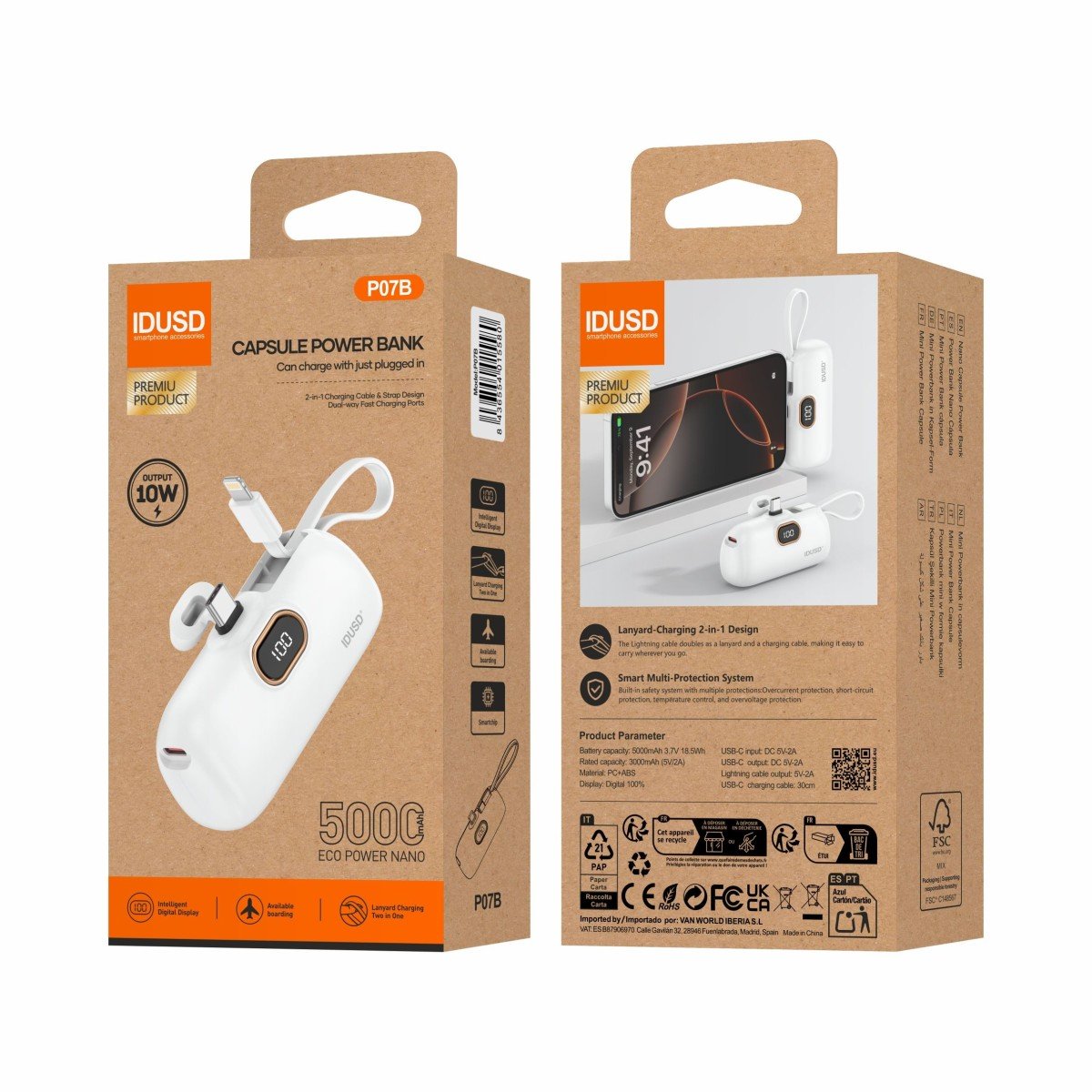 ๐ **Power Bank IDUSD P07B** โข Capacidad portรกtil. โข Diseรฑo ligero y resistente. โข Protecciรณn contra sobrecarga.