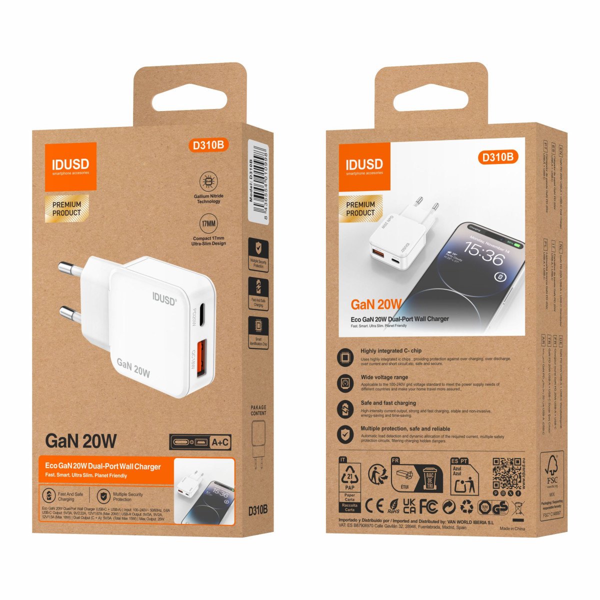 The GaN PD20W A+C Charger delivers fast, safe, and efficient charging in a compact and elegant design. With GaN (Gallium Nitride) technology and dual ports (USB-A + USB-C), it’s the perfect all-in-one solution for powering multiple devices at once.
