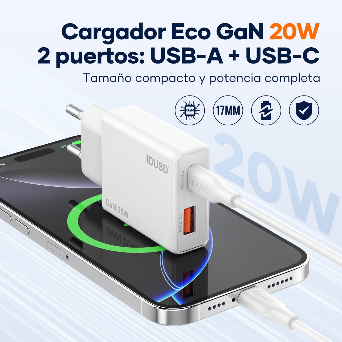 The GaN PD20W A+C Charger combines speed, safety, and intelligent design in a compact and efficient form. Powered by advanced GaN (Gallium Nitride) technology, it provides fast and stable charging for multiple devices while staying cool and energy-efficient.