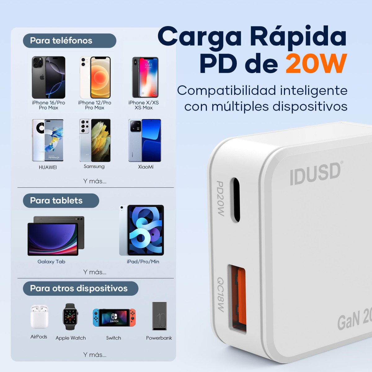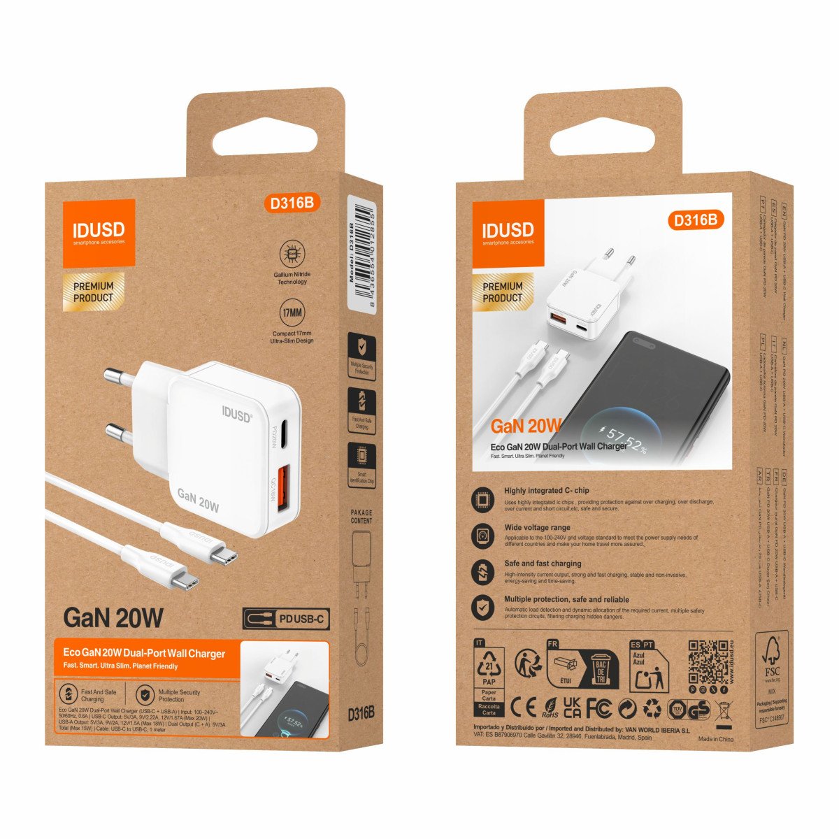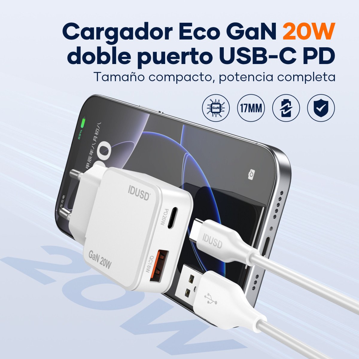 🔌 GaN PD20W A+C Charger – PD USB-C – D316B ⚡