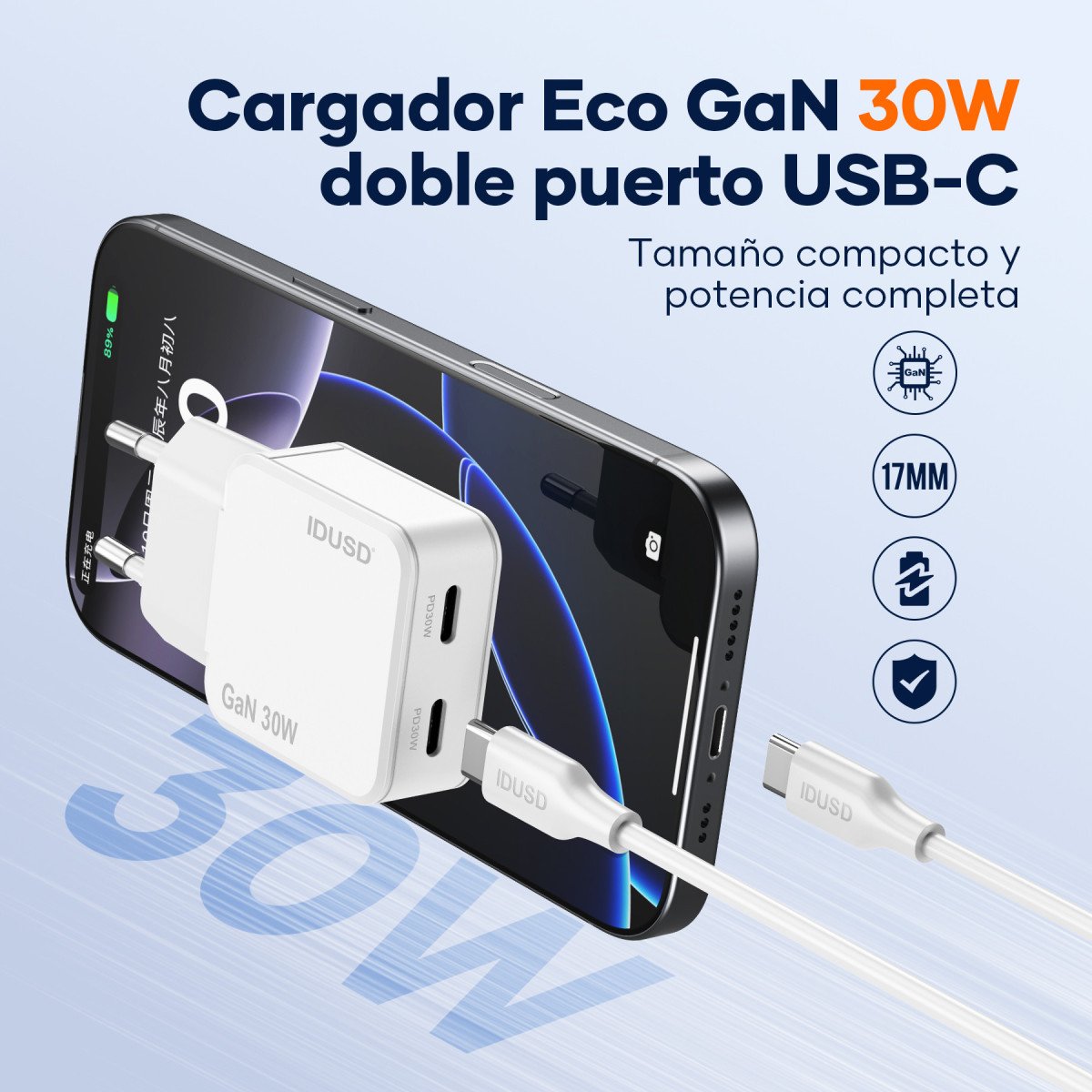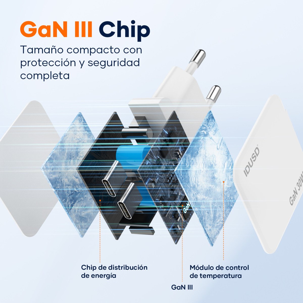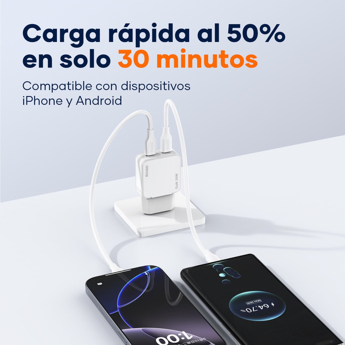 🚀 Ultra-fast and efficient charging with GaN (Gallium Nitride) technology, delivering more power in a compact size.