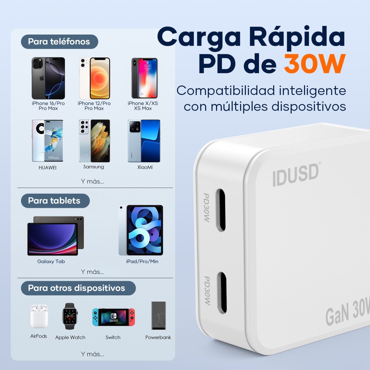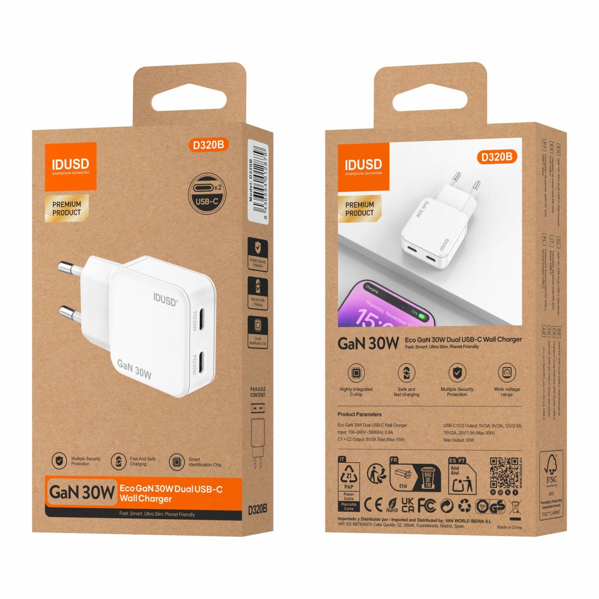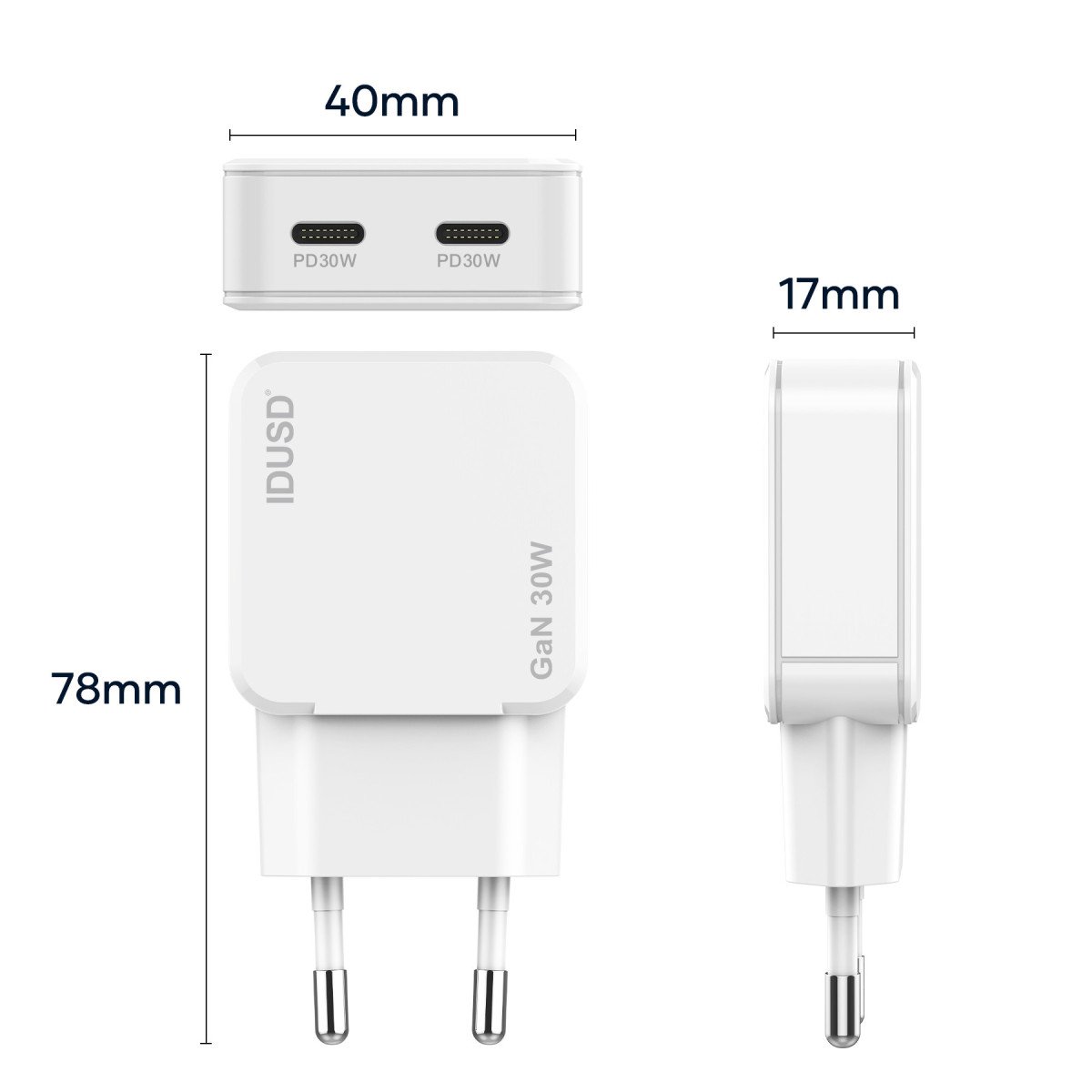 🚀 Ultra-fast and efficient charging with GaN (Gallium Nitride) technology, delivering more power in a compact size.