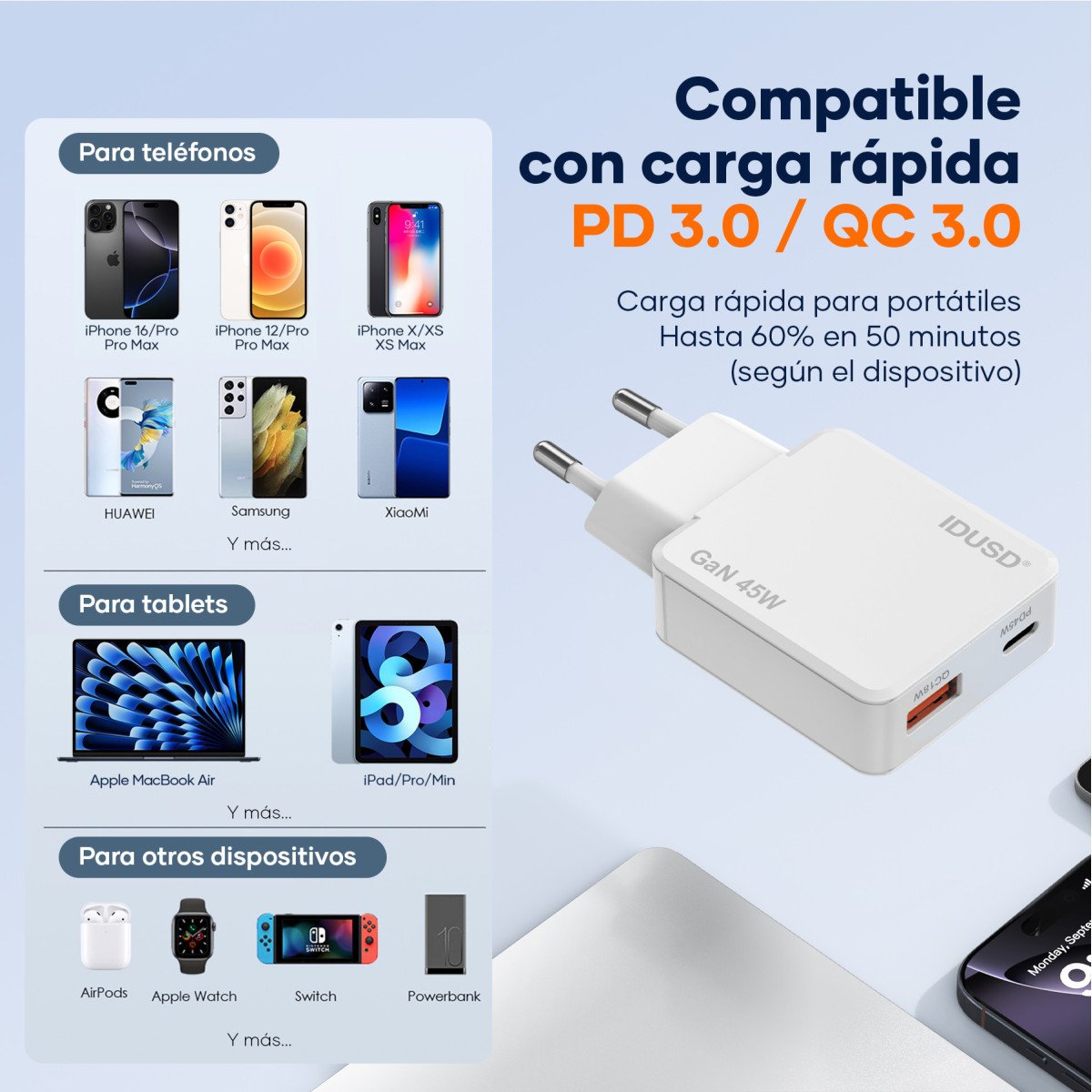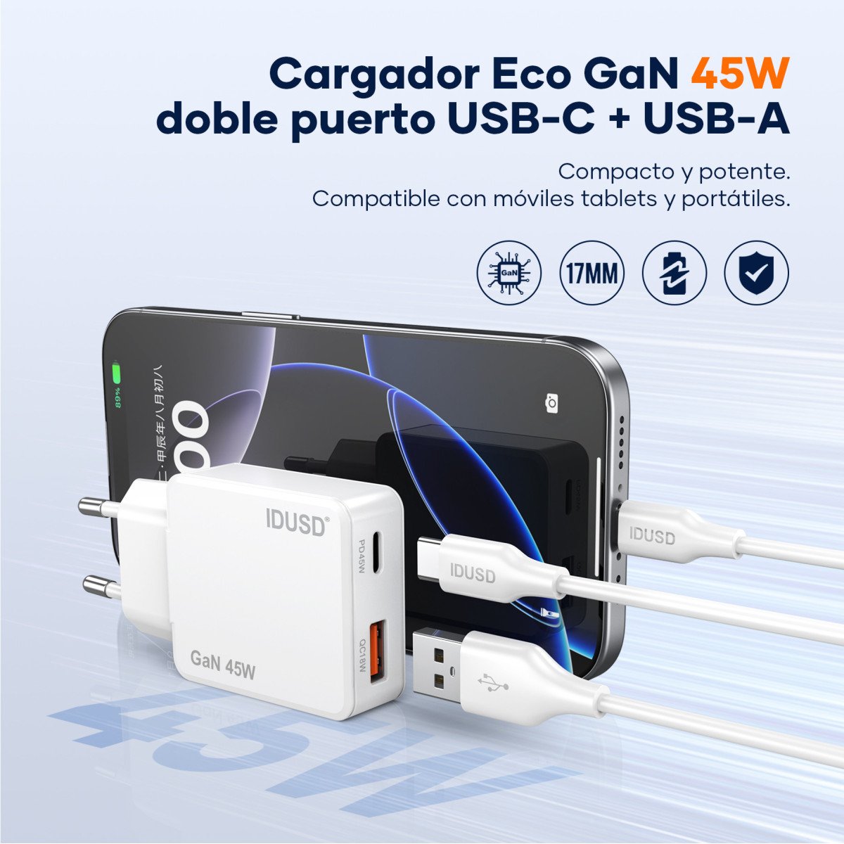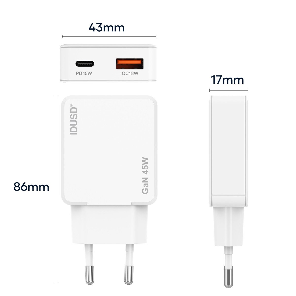 ⚡ 45W PD Fast Charging: Provides up to 45W of output power via Power Delivery (PD) — perfect for smartphones, tablets, and lightweight laptops.