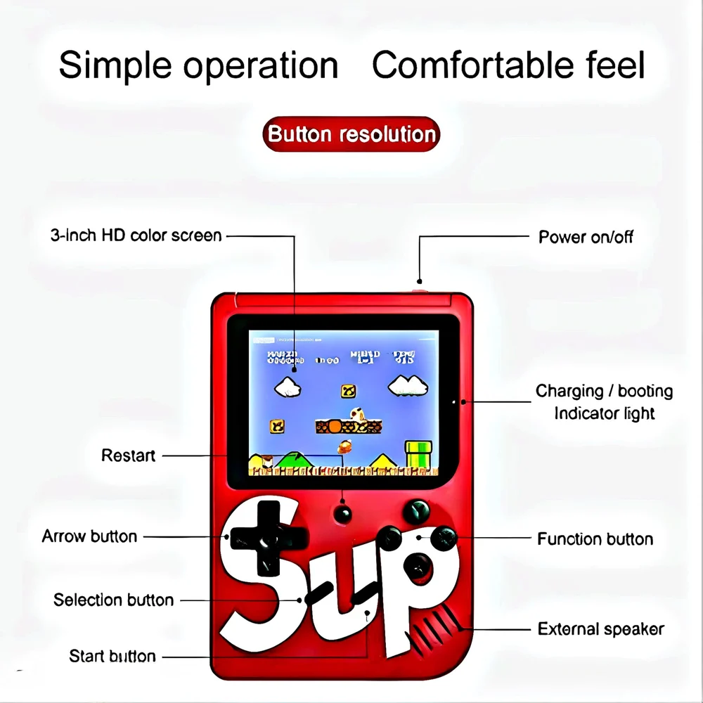 🕹️ Revive los clásicos de siempre, donde quieras La consola retro portátil SUP 400 en 1 incluye 400 juegos clásicos integrados, como Super Mario, Contra y muchos más, ideales para disfrutar de la nostalgia y la diversión en cualquier momento.