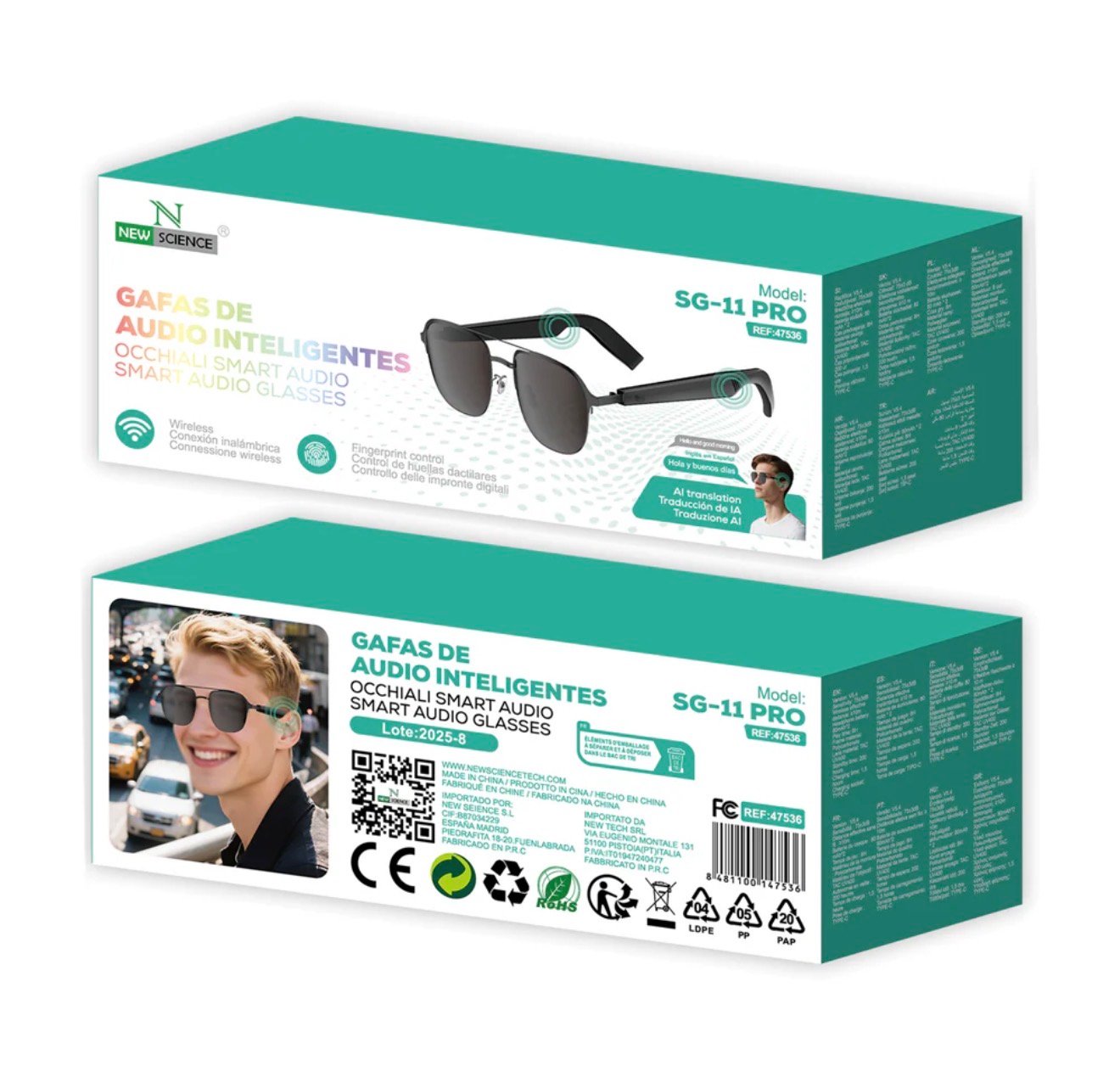 Disfruta de música, llamadas y asistencia inteligente sin necesidad de auriculares con las Gafas Inteligentes SG-11 PRO. Su elegante diseño metálico se combina con tecnología avanzada para ofrecerte comodidad, estilo y funcionalidad en tu día a día.