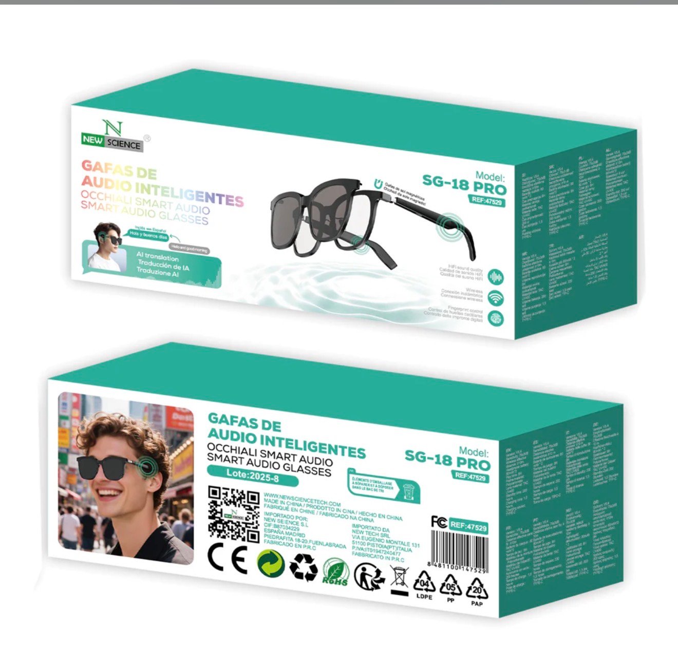 Descubre las nuevas Gafas Inteligentes SG-18 PRO, la combinación perfecta de estilo, tecnología y comodidad. Disfruta de tu música, atiende llamadas y controla todo con un solo toque, sin necesidad de auriculares.