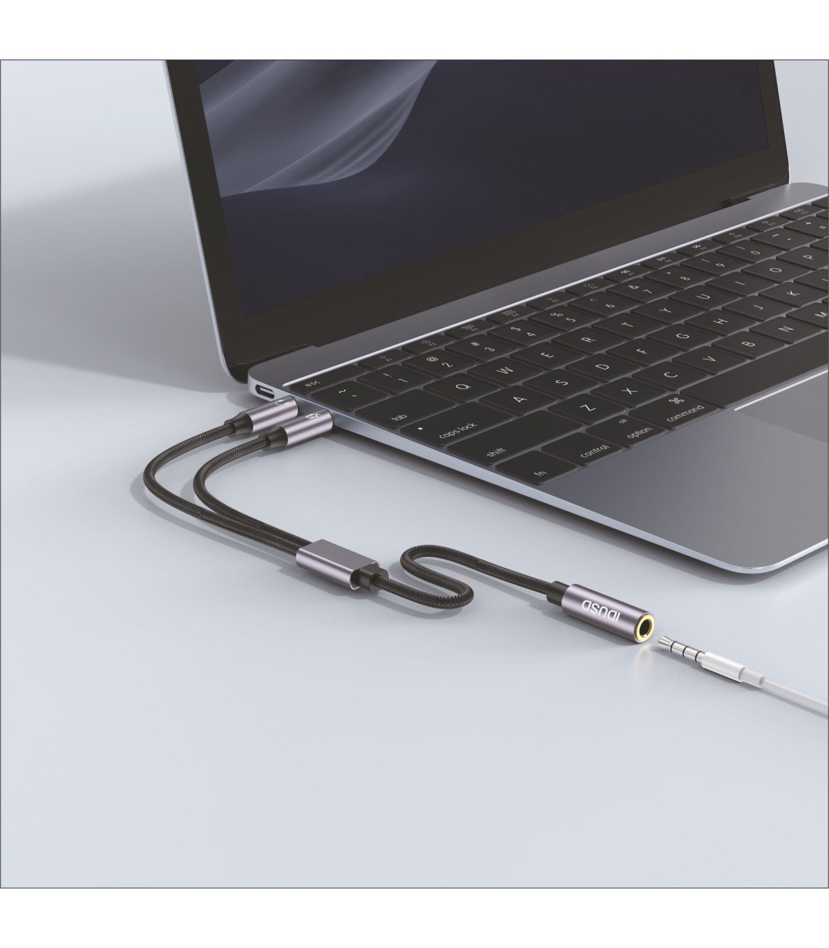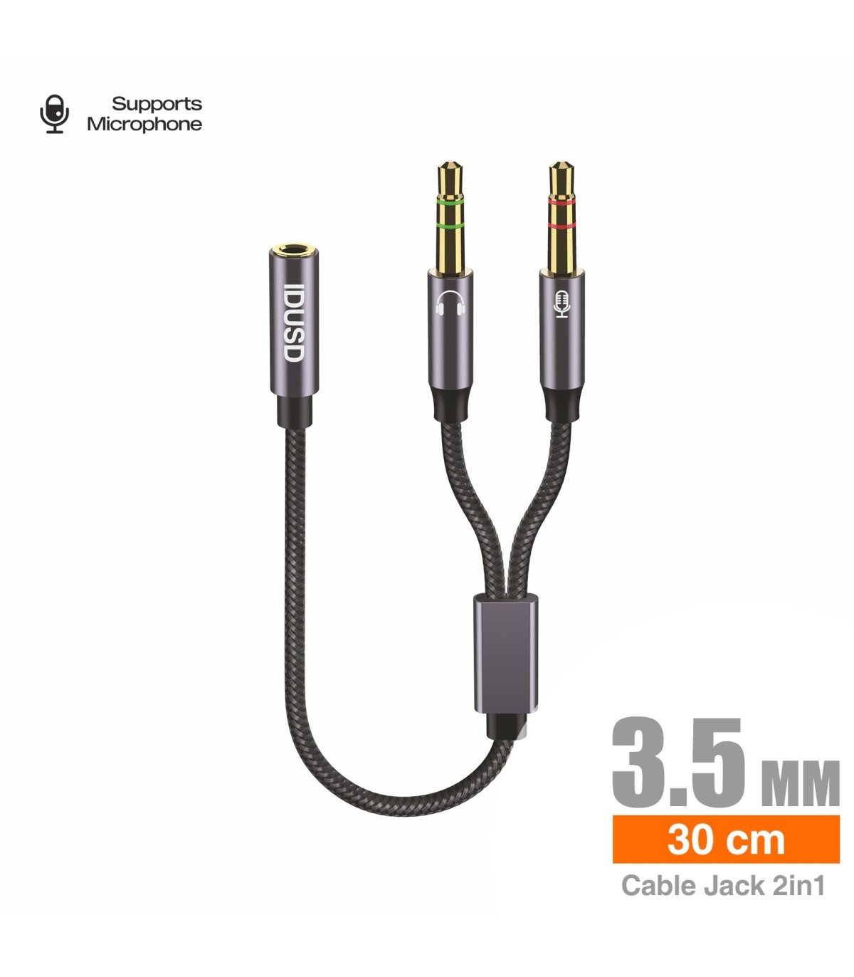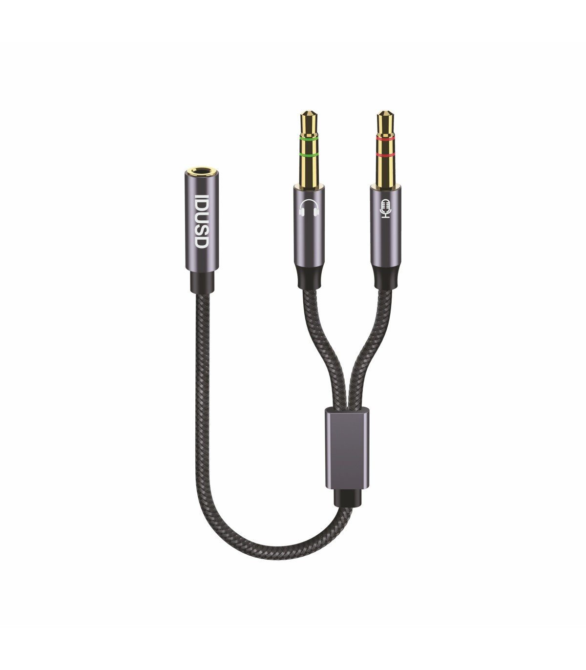 Divisor de 3.5 mm (TRRS a micrófono + auriculares). Ideal para usar auriculares con mic en PC.