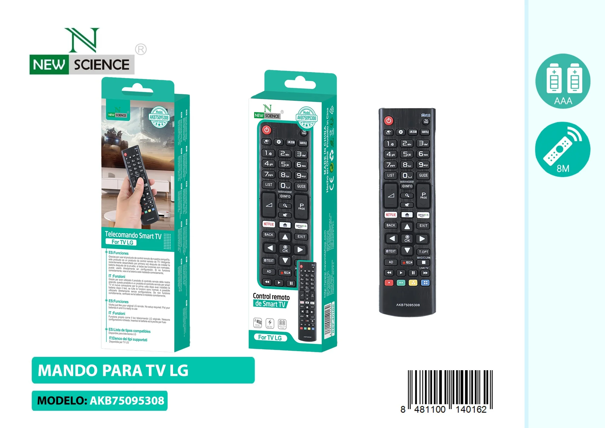 El Mando a Distancia para TV LG AKB75095308 es un mando de repuesto de alta calidad diseñado para televisores LG. Listo para usar sin necesidad de configuración: solo inserta las pilas y comienza a controlar tu televisor. Ligero, resistente y pensado para el uso diario.